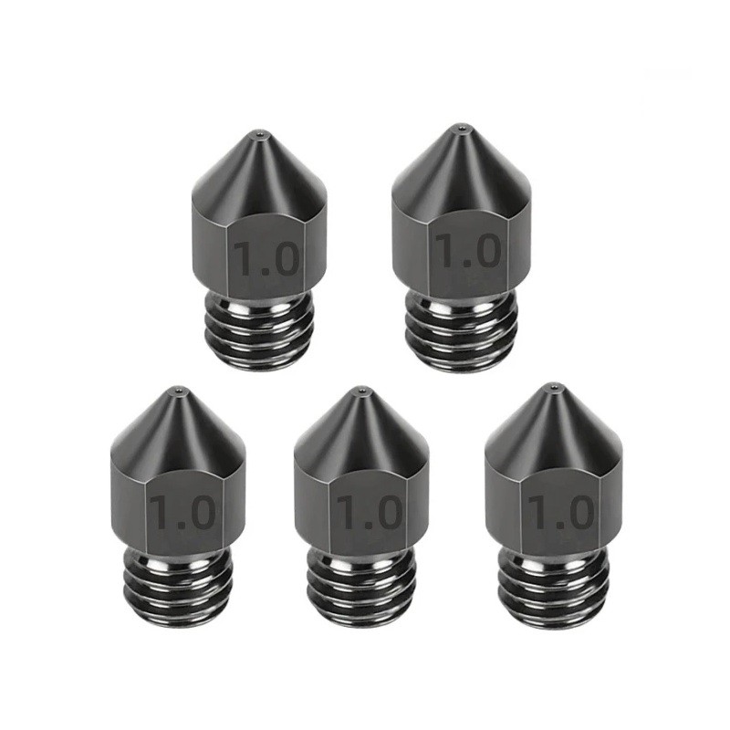 Zestaw 5 sztuk hartowanych stalowych dysz 1,0 mm M6 do filamentu 1,75 mm Ekstremalnie szybkie 3D drukowanie dużych obiektów Wytrzymałe dysze zapasowe