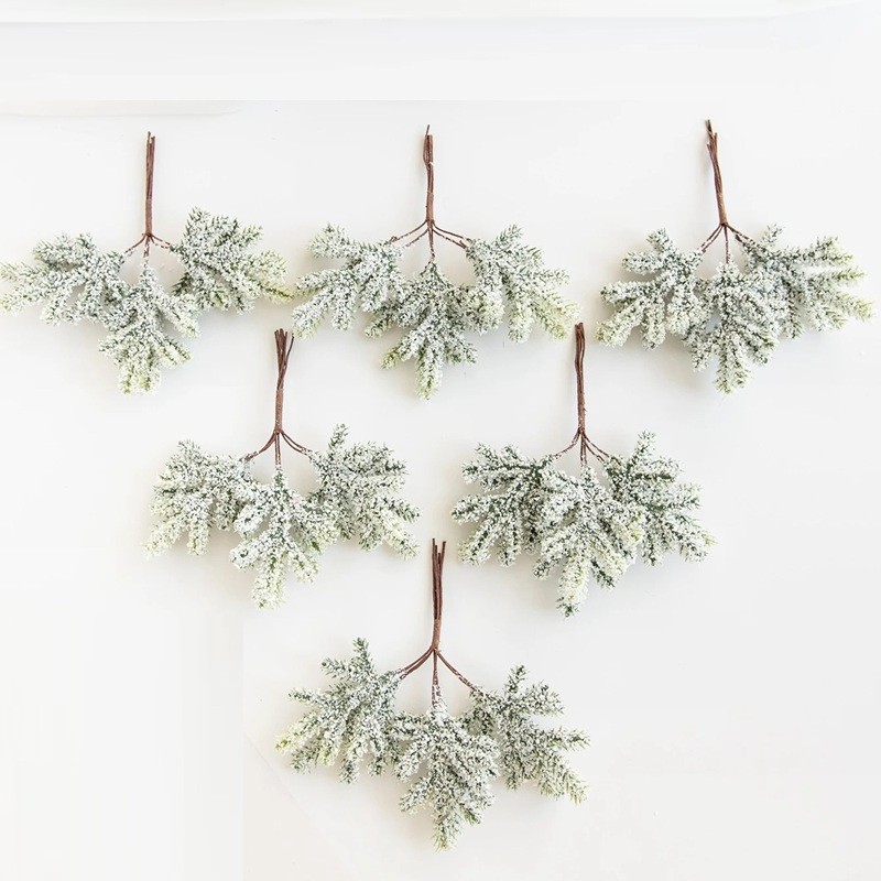 Zestaw 6 zaśnieżonych gałązek 12×15 cm Sztuczne gałązki świąteczne z efektem lodu Zimowa dekoracja na stół, wieniec lub ozdobę