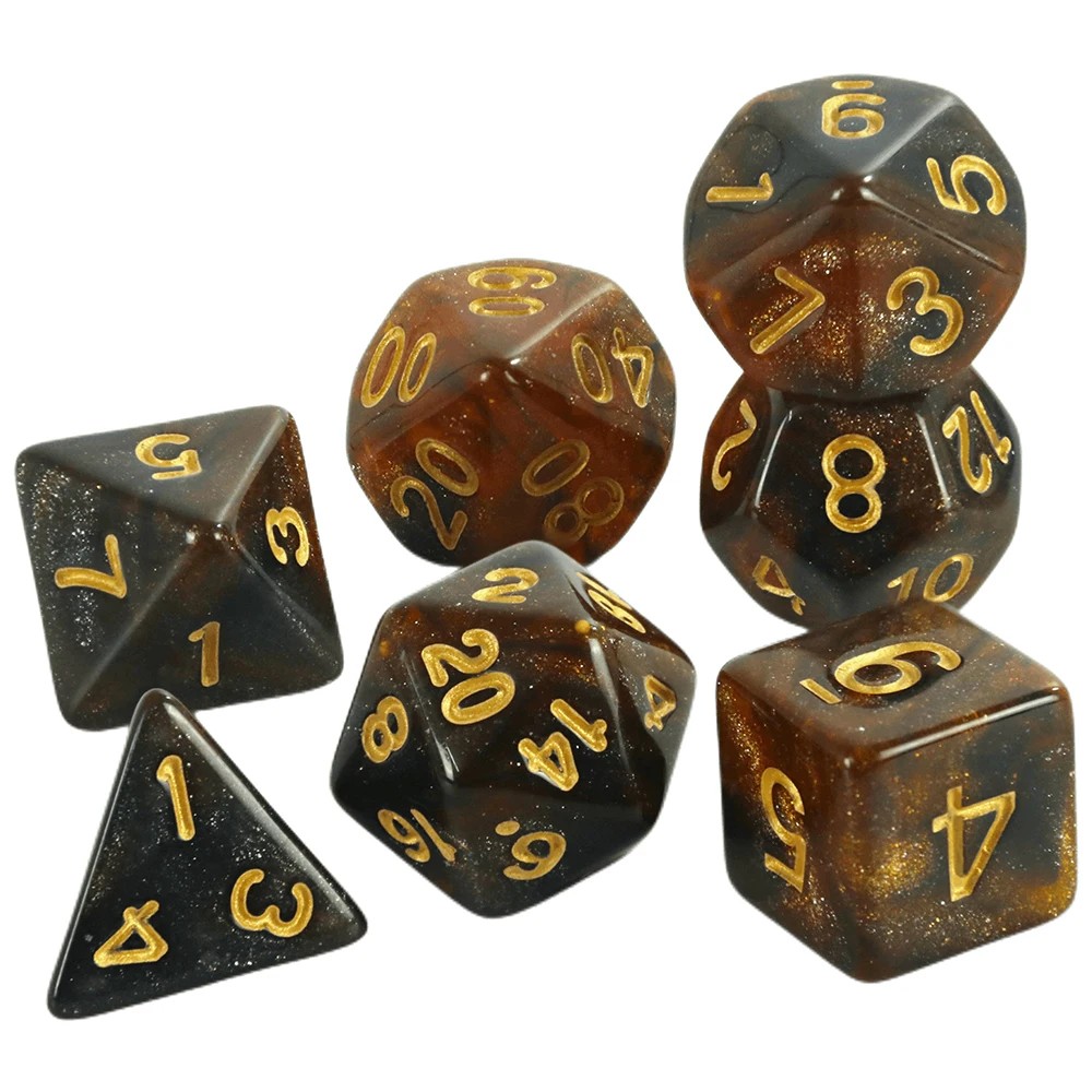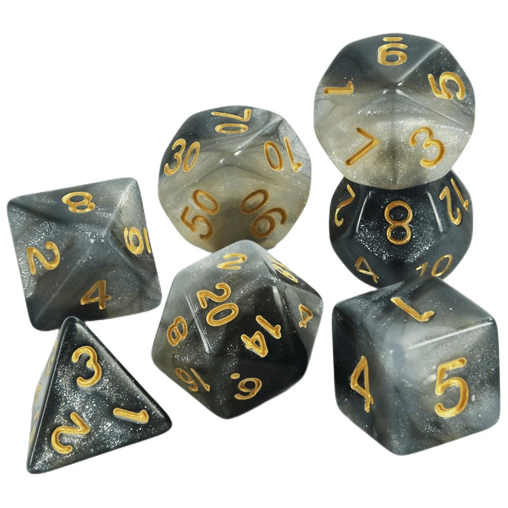 • Zestaw 7 sztuk wielościennych kostek do gry do RPG i gier planszowych