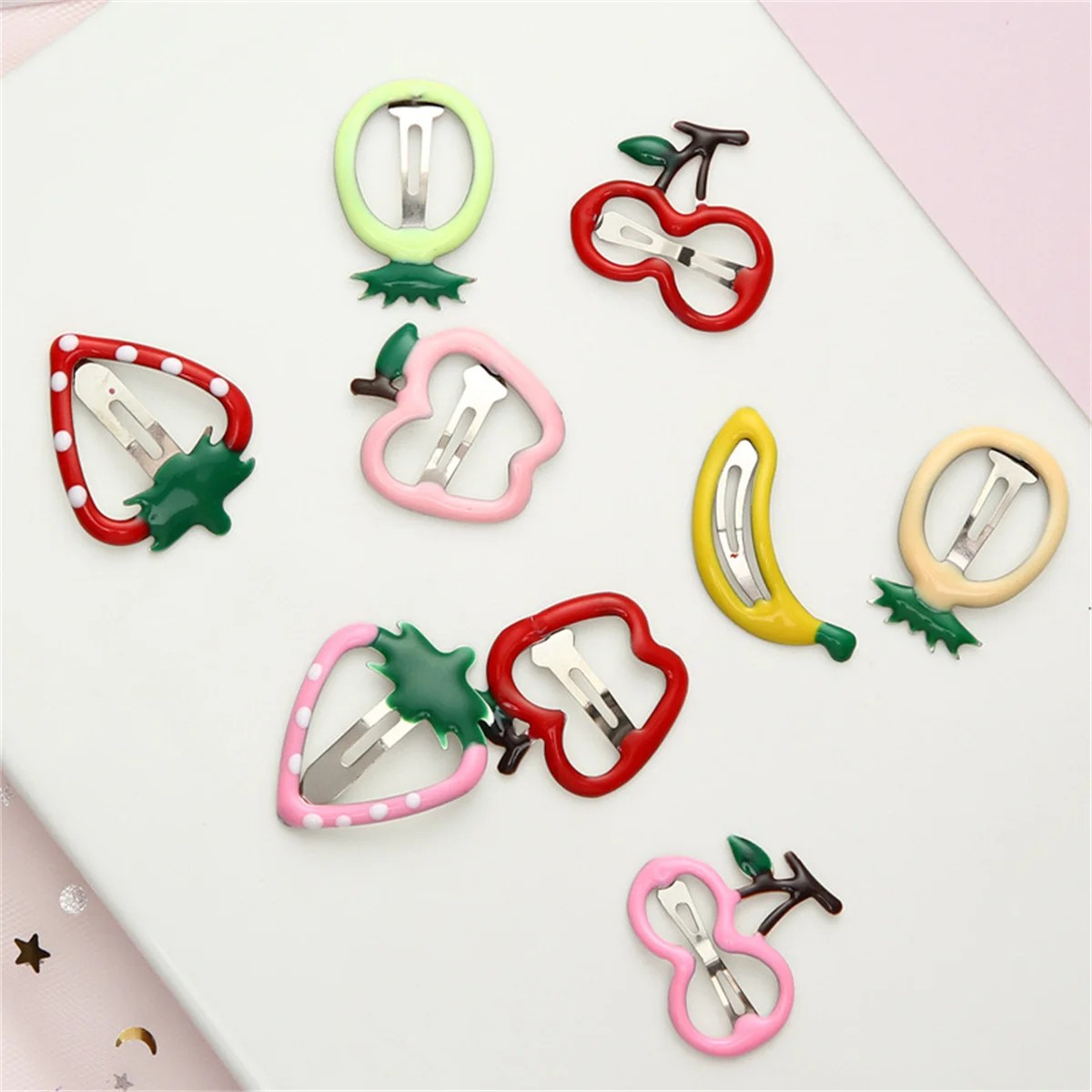 Strona główna Strona główna Odzież i akcesoria Ubranka dla dzieci Akcesoria dziecięce Zestaw 8 sztuk dziecięcych spinek do włosów z motywem owoców Truskawka jabłko banan gruszka Urocze wsuwki dla dziewczynek