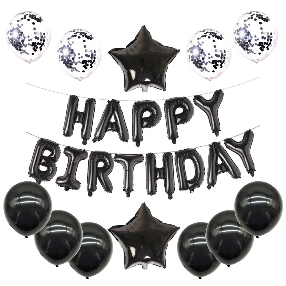 Zestaw balonów HAPPY BIRTHDAY 13 sztuk czarne balony i przezroczyste balony z konfetti dekoracyjne balony foliowe dekoracja urodzinowa