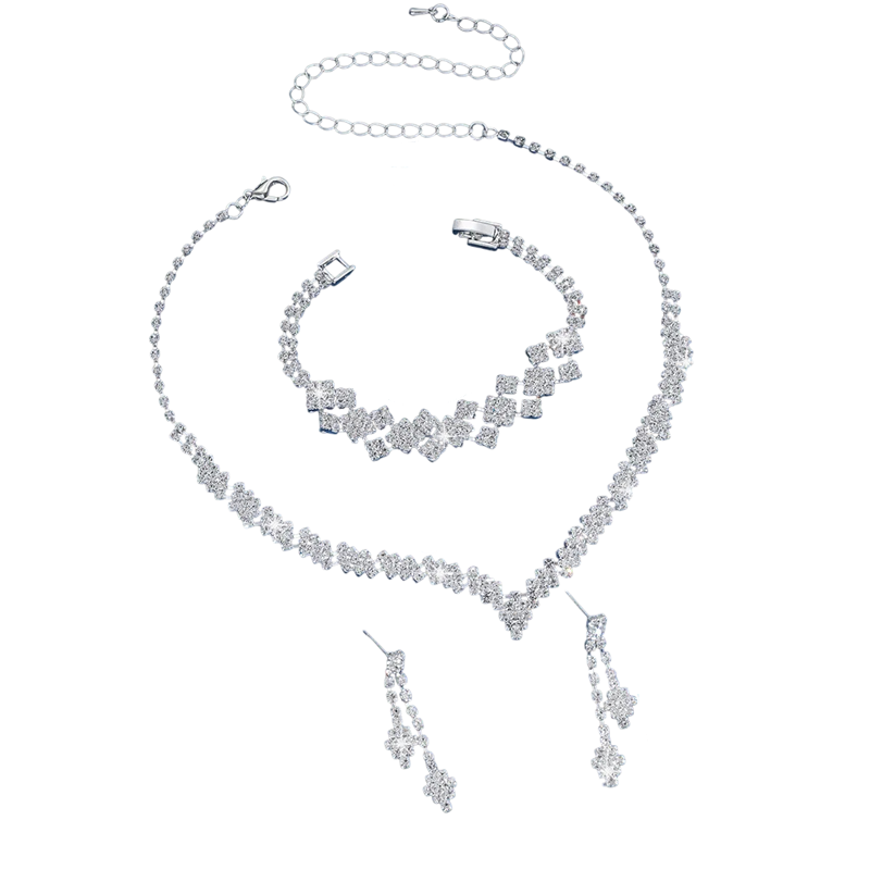 Zestaw biżuterii ślubnej 32+14,5 cm Naszyjnik 17,5 cm Bransoletka 4 cm Kolczyki Kryształy V Srebrzony Hipoalergiczny zestaw