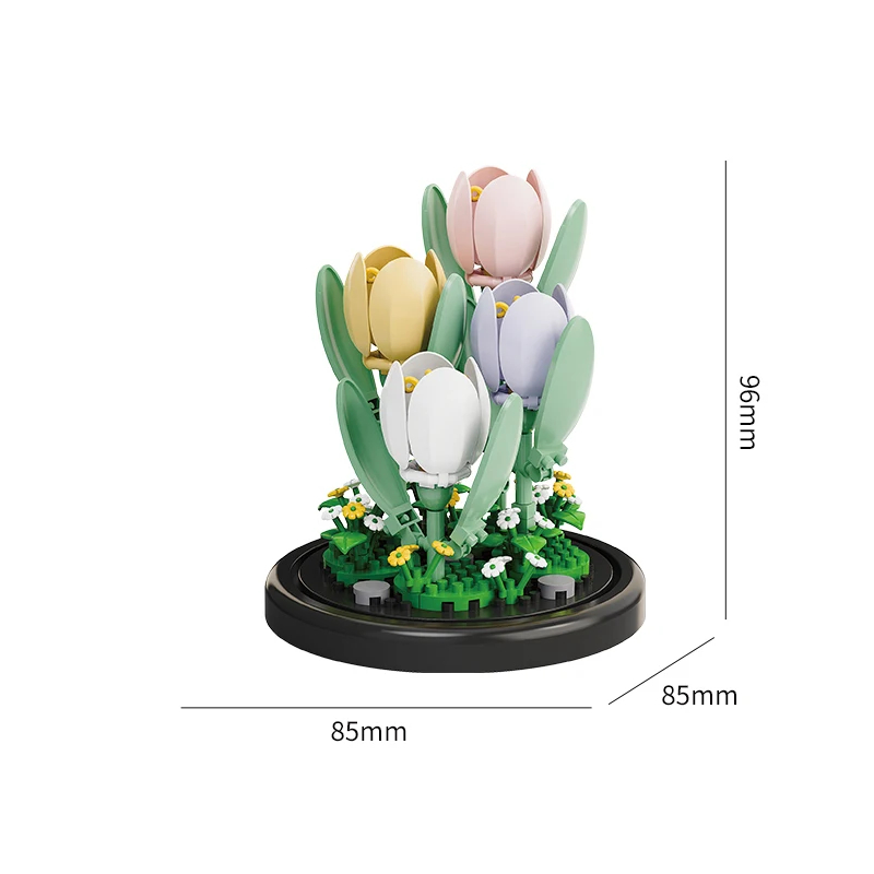 Stavebnica kwiatów Wiosenne krokusy pod przezroczystą pokrywą 8,5 x 8,5 cm Elegancka dekoracja do wnętrz Wariant 173 elementów