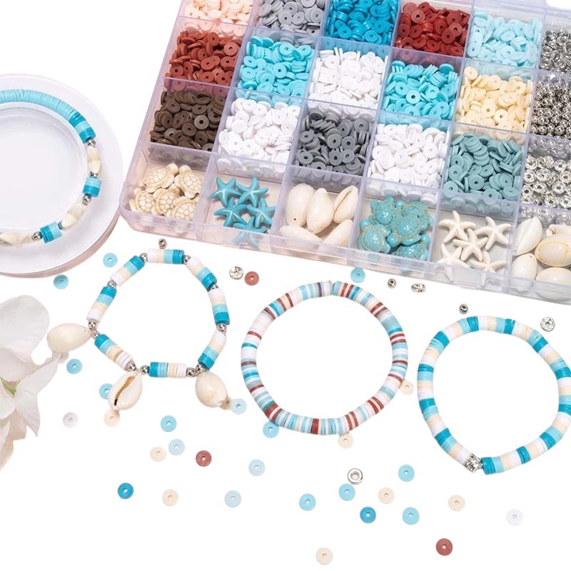 Zestaw koralików z gliny w motywie oceanu muszelki gwiazdice żółwie Zestaw polimerowy do tworzenia biżuterii Bransoletki naszyjniki zawieszki tworzenie