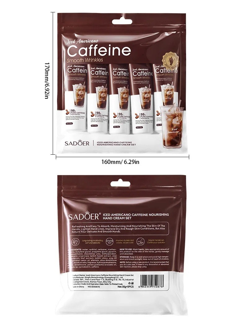 Zestaw kremów do rąk 5 szt. 30 g Nawilżające kremy z kofeiną 98 % Delikatna struktura Lekki zapach kawy Pielęgnacja na jesień i zimę