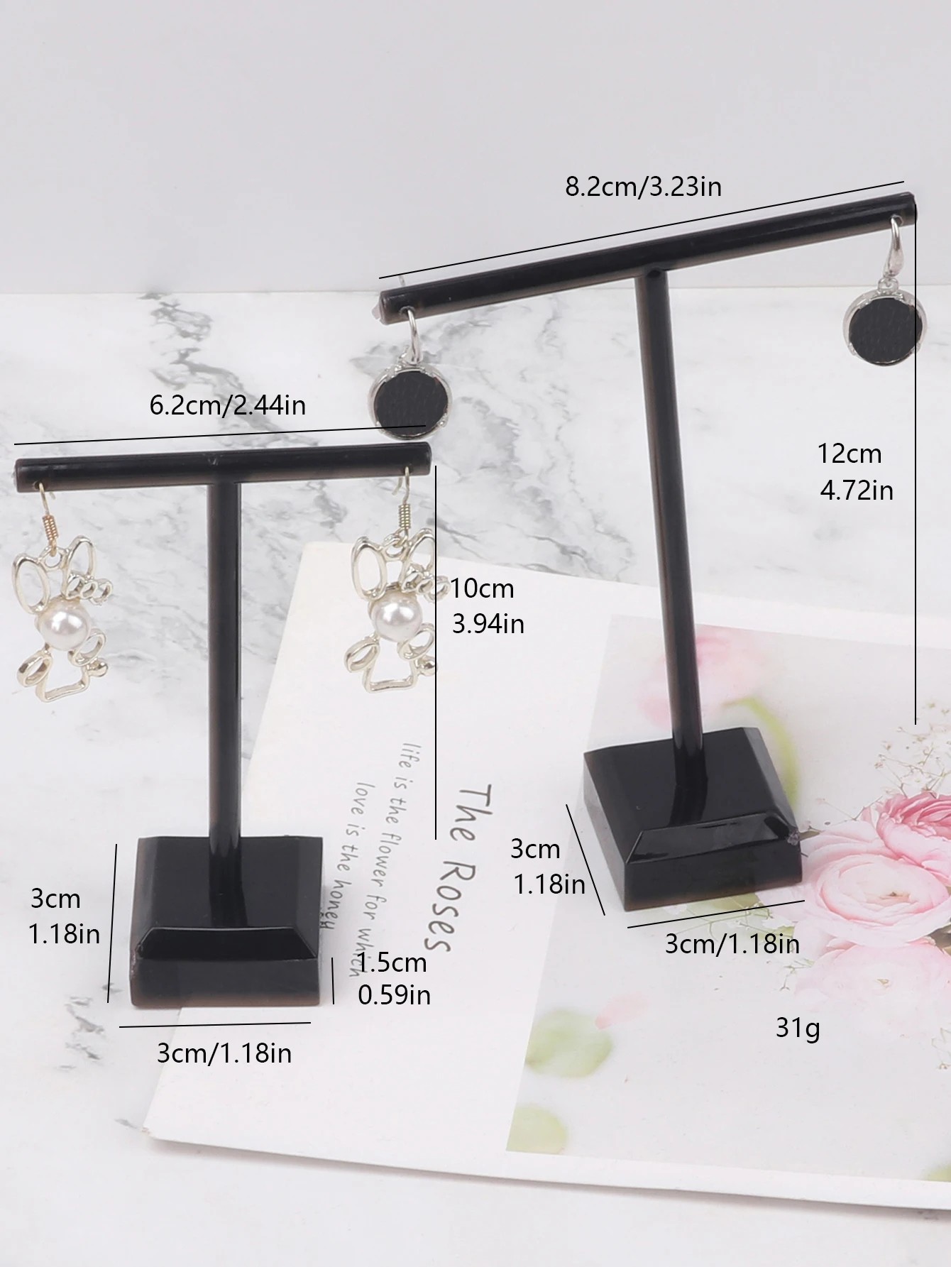 Zestaw stojaków na kolczyki 2 szt. 6 × 10 cm i 8 × 12 cm akrylowy stojak czarny i przezroczysty organizator na kolczyki na stół
