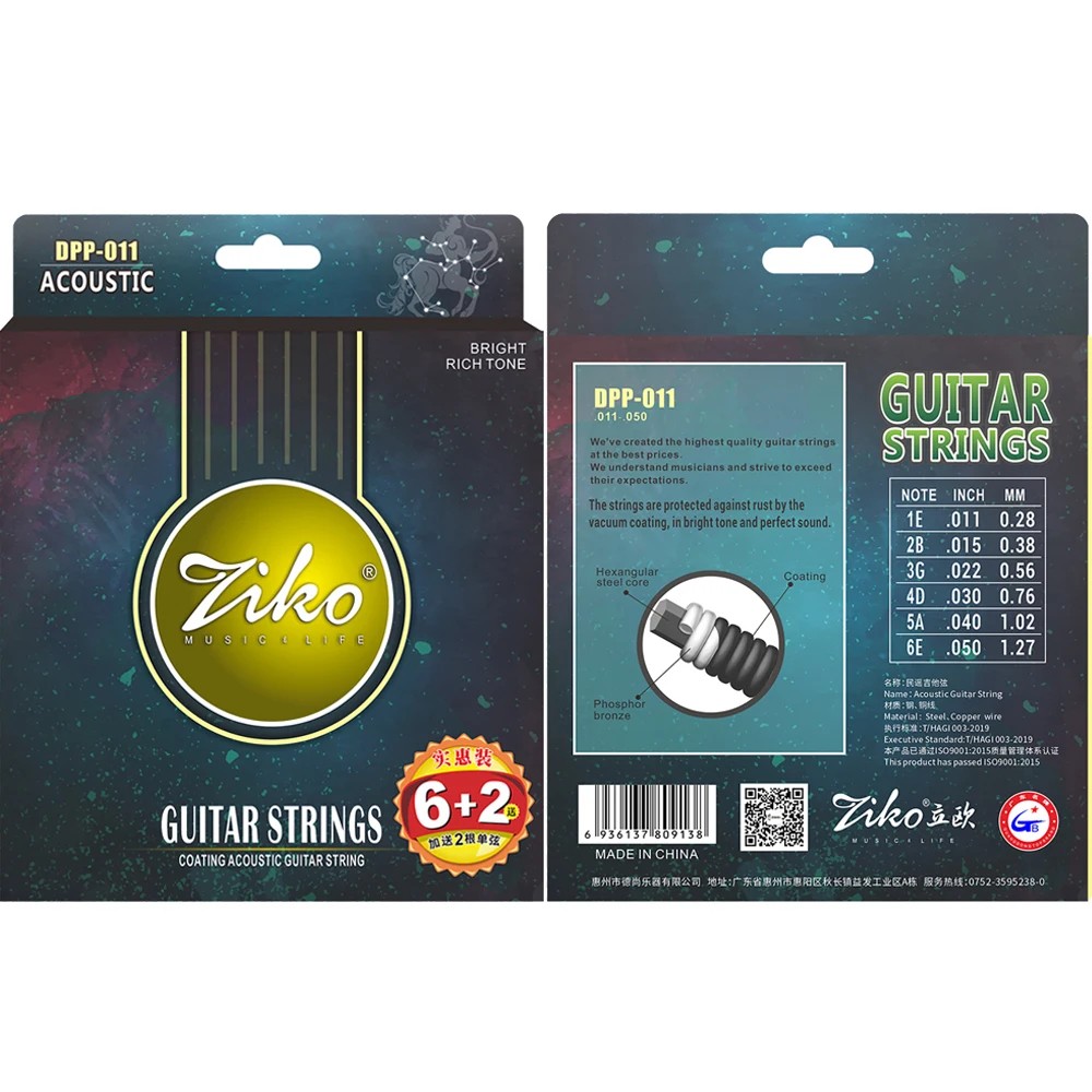1× zestaw 6 strun DPP-011 do gitary akustycznej (E, A, D, G, B, E)