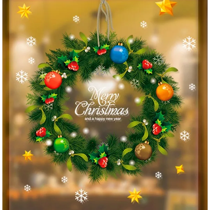 Zestaw świątecznych naklejek PVC na okno 45 x 30 cm Świąteczny wieniec, płatki śniegu i gwiazdy Wielokrotnego użytku zimna dekoracja okien