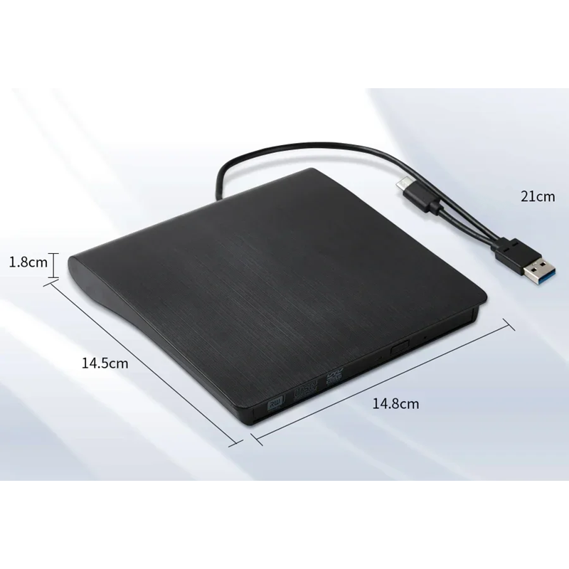 Zewnętrzna nagrywarka CD/DVD 14,5 x 14,8 x 1,8 cm USB 3.0/USB-C Plug and Play Nagrywarka dla Windows i Mac OS Przenośny napęd optyczny