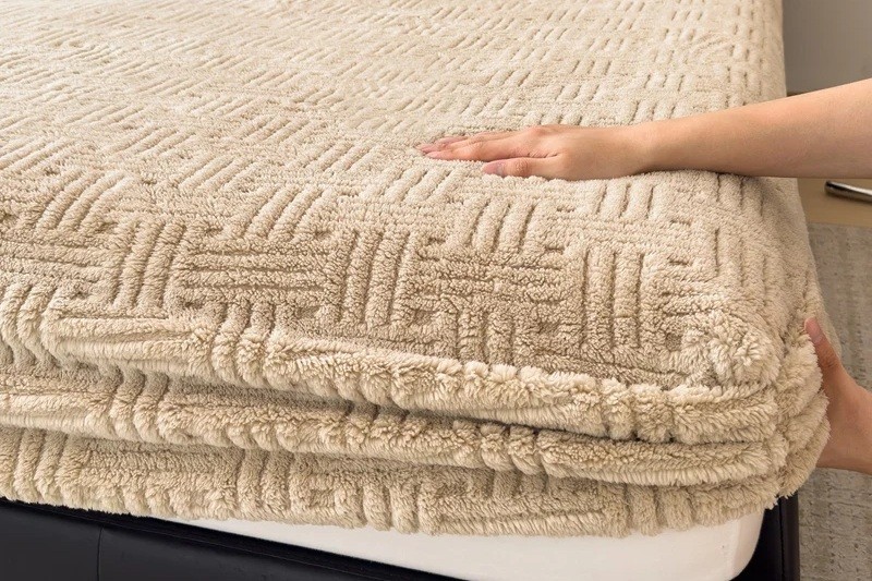 Strona główna Strona główna Akcesoria i dodatki do domu Tekstylia domowe Prześcieradła Zimowe welurowe prześcieradło 200 x 220 cm Elastyczne prześcieradło na materac Wzór reliefowy Miękkie ciepłe prześcieradło