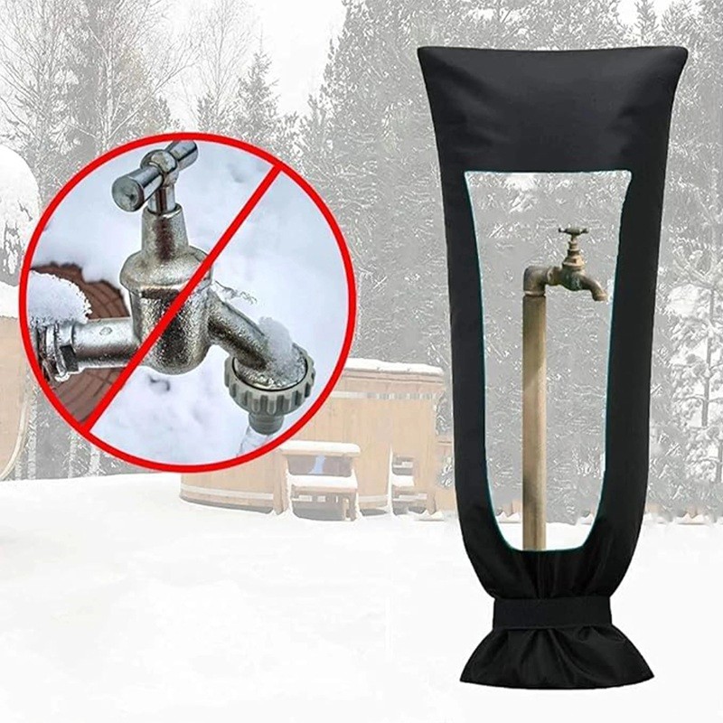 Zimowy izolacyjny pokrowiec na zewnętrzny kran 19 x 50 cm Czarny Extra ochrona przed mrozem wiatrem i deszczem