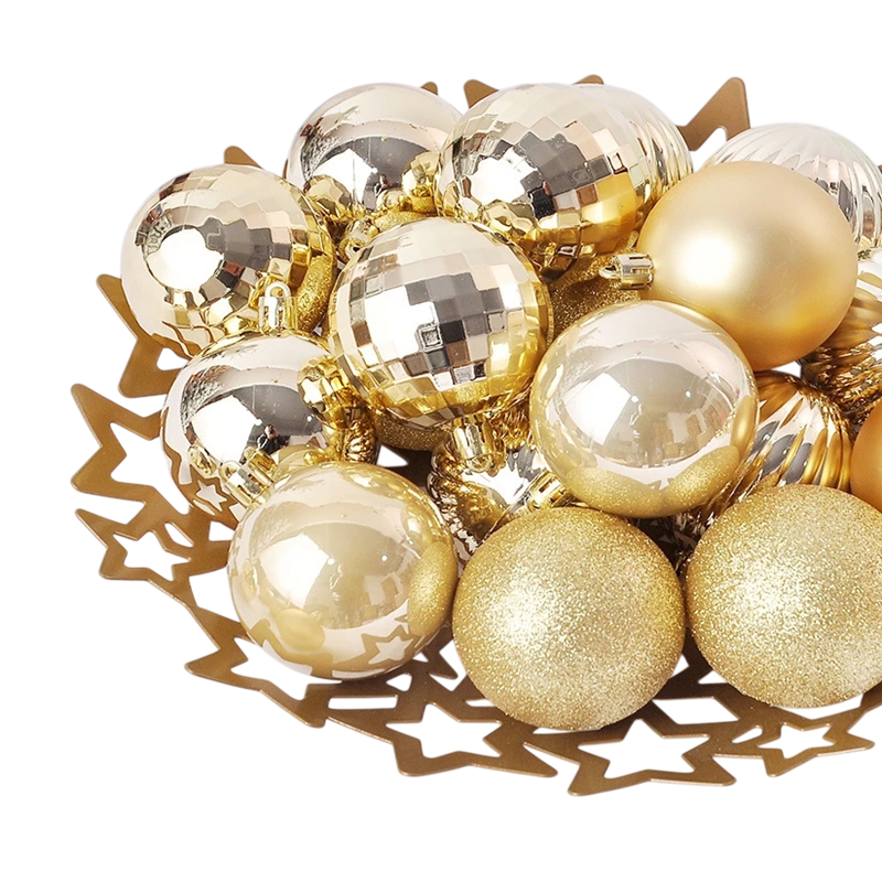 Ten złoty zestaw ozdób choinkowych jest idealnym wyborem dla wszystkich, którzy chcą stworzyć elegancką i tradycyjną dekorację świąteczną z naciskiem na świąteczny wygląd. Zawiera 44 szt. ozdób choinkowych, które są kolorystycznie zharmonizowane w złotym wykonaniu i tworzą harmonijną całość. Dzięki kombinacji różnych rozmiarów dekoracja wygląda wyważenie i naturalnie. Zestaw pasuje zarówno do klasycznie urządzonych wnętrz, jak i do nowoczesnych domów.