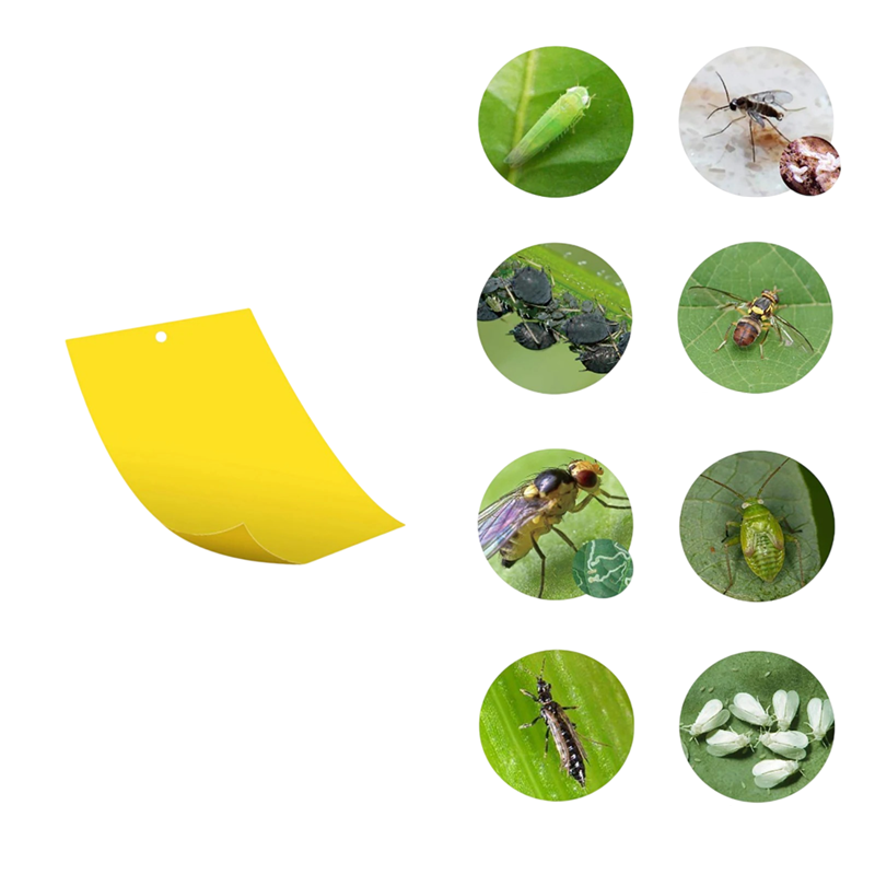 Dwustronne klejące pułapki na latające owady stanowią prosty sposób na łapanie drobnych owadów w okolicy roślin lub w różnych pomieszczeniach wewnętrznych i na zewnątrz. Dzięki żółtej barwie te klejące płytki są dobrze widoczne i mogą przyciągać latające owady.